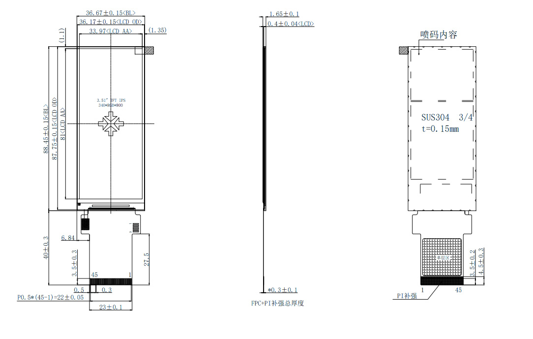 Denne3,51 tommer lang stripskærmkan prale af en opløsning på 340*800, IPS fuld betragtningsvinkel og bruger den modne og stabile ST7701S driver IC. Den understøtter 16/18/24-bit RGB-grænseflader og 1/2-kanals MIPI-grænseflader. Modelnummeret fra Shenzhen Hongjia Technology er HJ3510-01. Den har et standard 45-bens stik og en I2C kapacitiv touchscreen interface. Denne lille bar-type skærm er velegnet til brug i små husholdningsapparater, smart home-enheder, skønhedsudstyr, kaffemaskiner, medicinsk udstyr og andre produkter. Vi tilbyder også tilpasningstjenester.